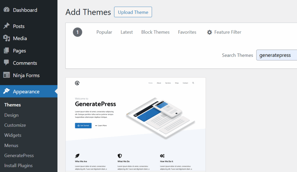 - Search for GeneratePress.