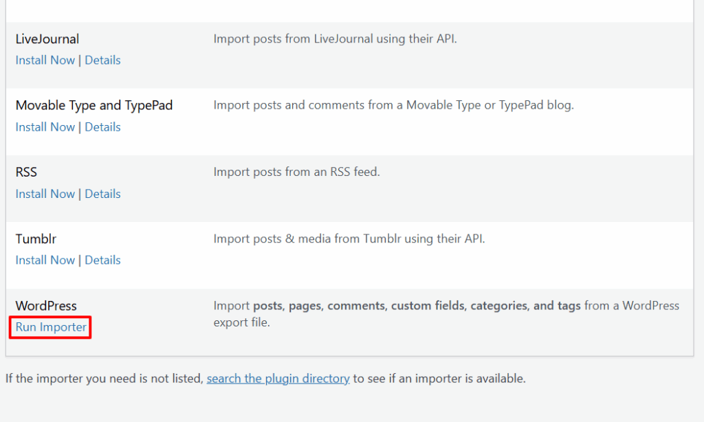 - Click WordPress (install importer if prompted).