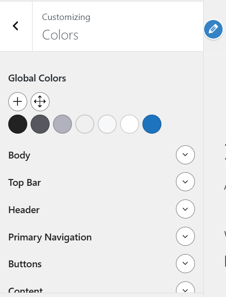 - Go to Appearance > Customize > Colors to edit site-wide color settings.