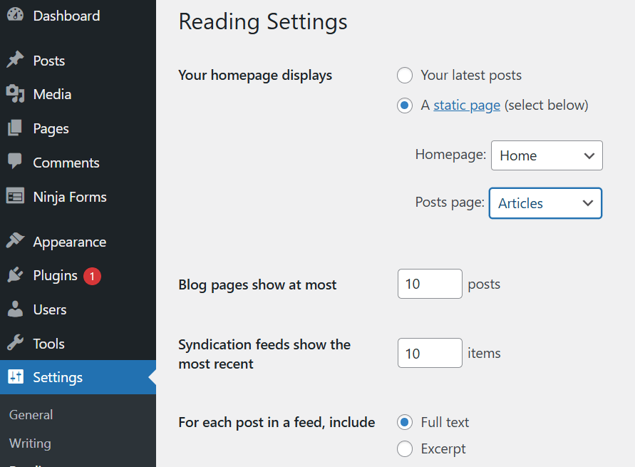 - Go to Settings > Reading.