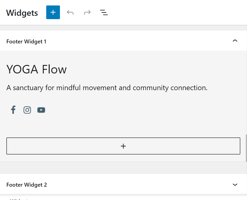 - Add content to Footer Widget 1, 2, 3, etc.