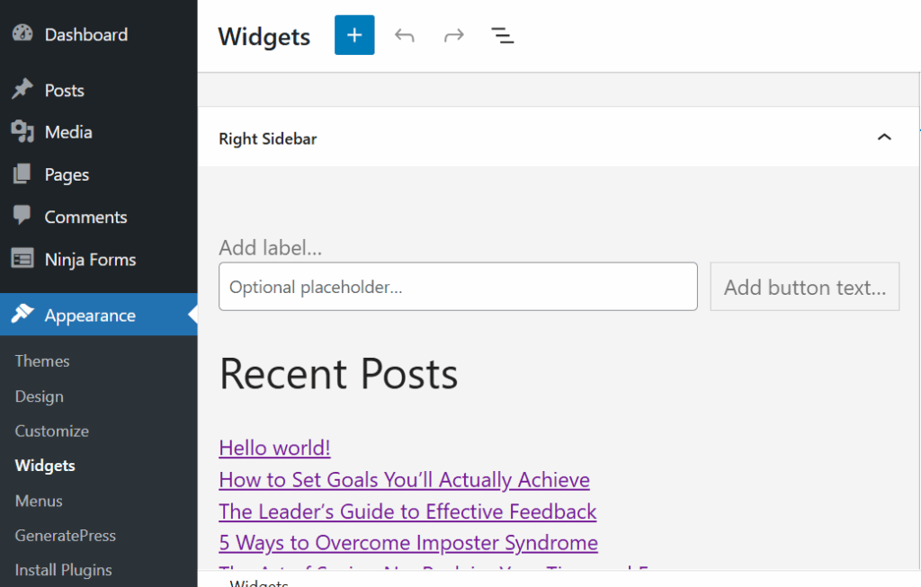 - Still in Appearance > Widgets, find the Right Sidebar or Blog Sidebar.