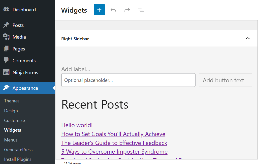 - Still in Appearance > Widgets, find the Right Sidebar or Blog Sidebar.