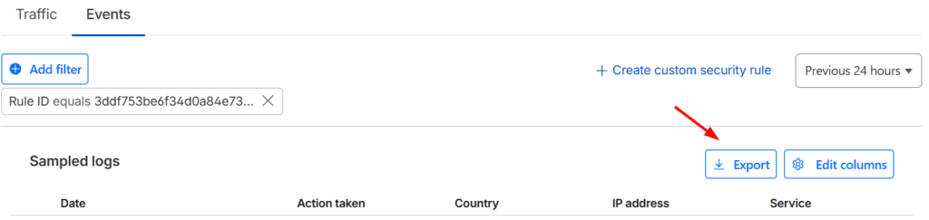 Then click on the Events for each rule → select Last 24 hours → Export.